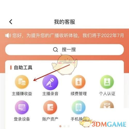 1、打开喜马拉雅,点击进入我的客服,点击主播赚收益。