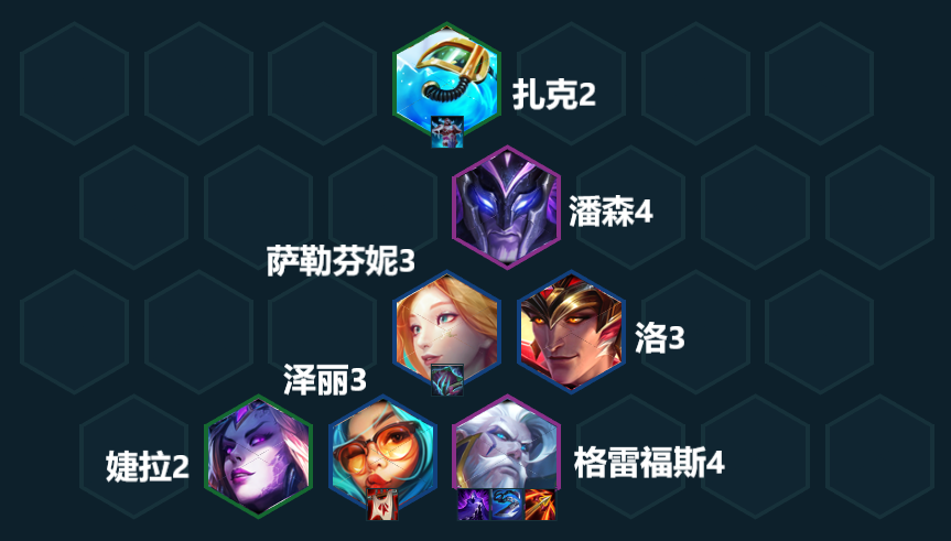 3-5/3-7拉七开搜,至少要找出2星萨勒芬妮+1星男枪+1星潘森才可以稳定连胜。顺风整体质量足够就考虑上八再搜,逆风则考虑在七级追3星萨勒芬妮,锁血稳定节奏后看情况是上八或是继续慢追其它3星。同行太多的局则不建议在七级停留太久,选秀有潘森、男枪、巴德、索拉卡都可以拿!