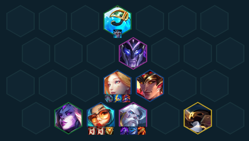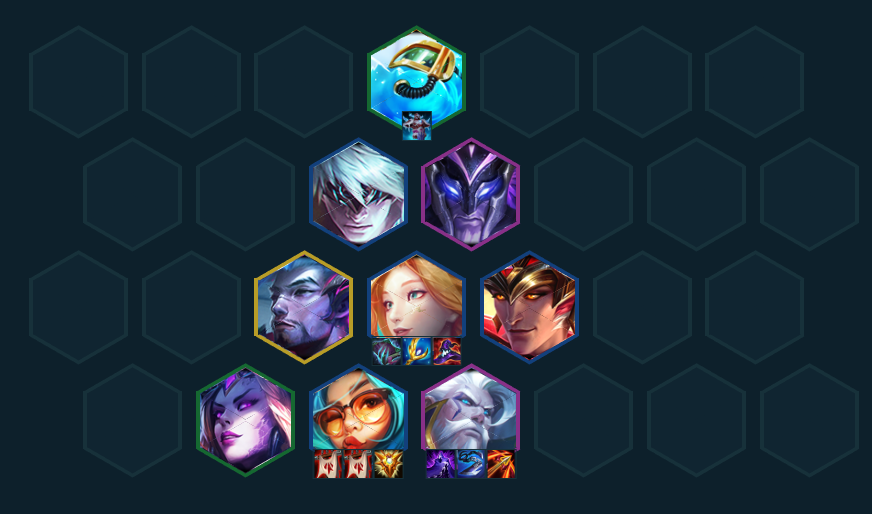 尽快上八,找出巴德/索拉卡的任意1张阵容就基本成型,巴德可以开3秘术,给全队加回蓝还能提供Aoe控制和来高费卡的几率;索拉卡给阵容提供稳定回复,群体奶对于王八阵来说非常关键;亚索则和潘森开2狂刃战士适合在装备溢出的情况下选择补充输出,但一般会在九级和李青一起上场,都没有则考虑上第二张男枪。在8级卡利息把阵容整体搜到2星后就可以考虑上九找任意2星橙卡补充阵容上限,也可以在八级搜3星的男枪和萨勒芬妮,根据转职、装备和海克斯的适配性灵活变阵!