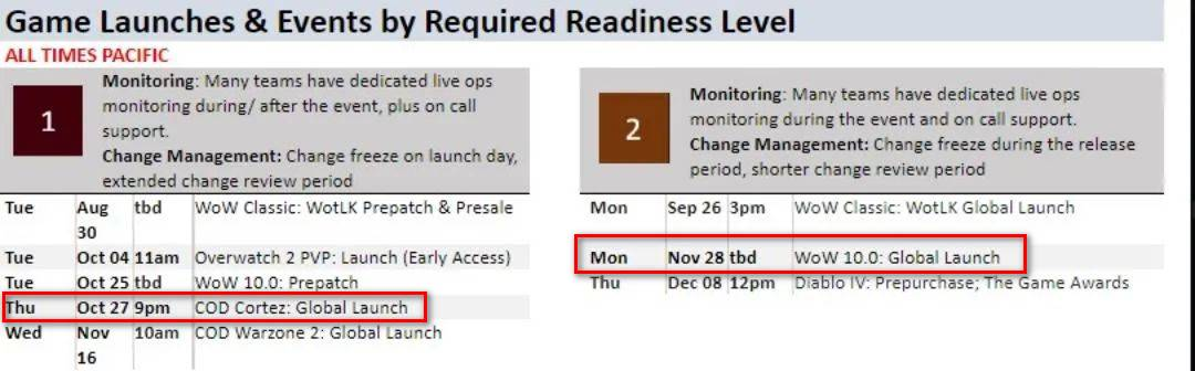 2、根据22年8月16日,来自外服大型综合性论坛Reddit的爆料,巨龙时代的前夕版本和正式开放时间已经被泄漏出来。据透露,这是一份来自动视暴雪内部的资料,将下半年的游戏发行计划都详细列举了出来。