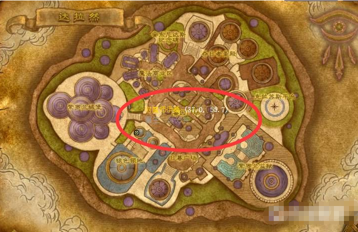 附魔师伊桑在诺森德的主城达拉然,玩家来到晶歌森林的达拉然,在坐标(37,55.7)附近,就可以看到附魔师伊桑了,他是一个传家宝商人。