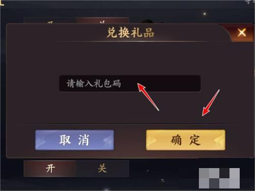 4 输入框中输入礼包码,点击确定即可进行兑换。