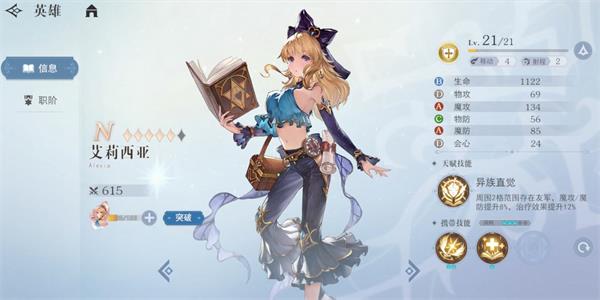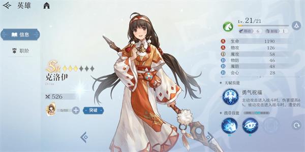 天赋-异族直觉:周围2格范围存在友军,魔攻/魔防提升5%,治疗效果提升5%。