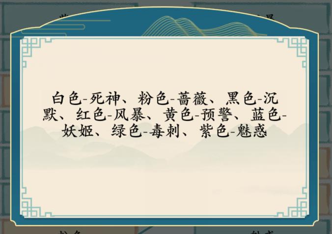 1、这一关是连颜色相关,有歌词,有梗,也有一些奇怪的知识