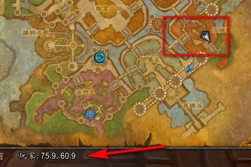 1、首先玩家需要来到暴风城的旧城区的下图位置,坐标(75.9,60.9)附近。