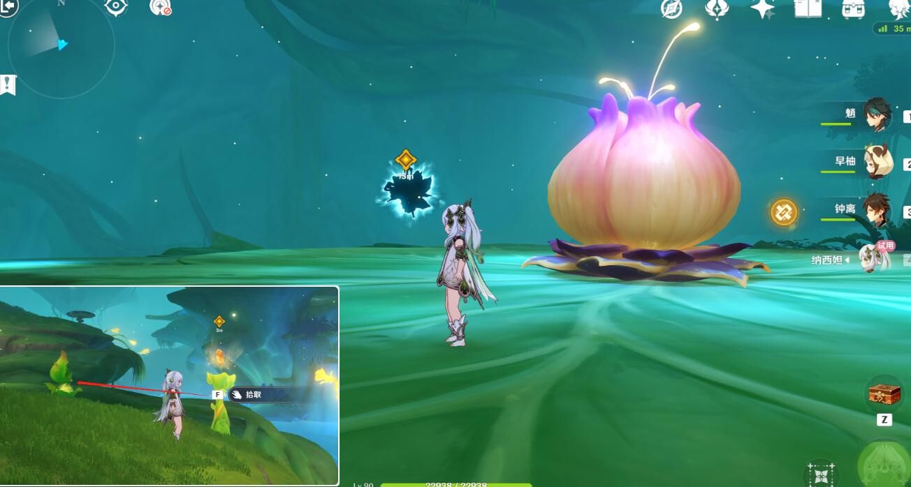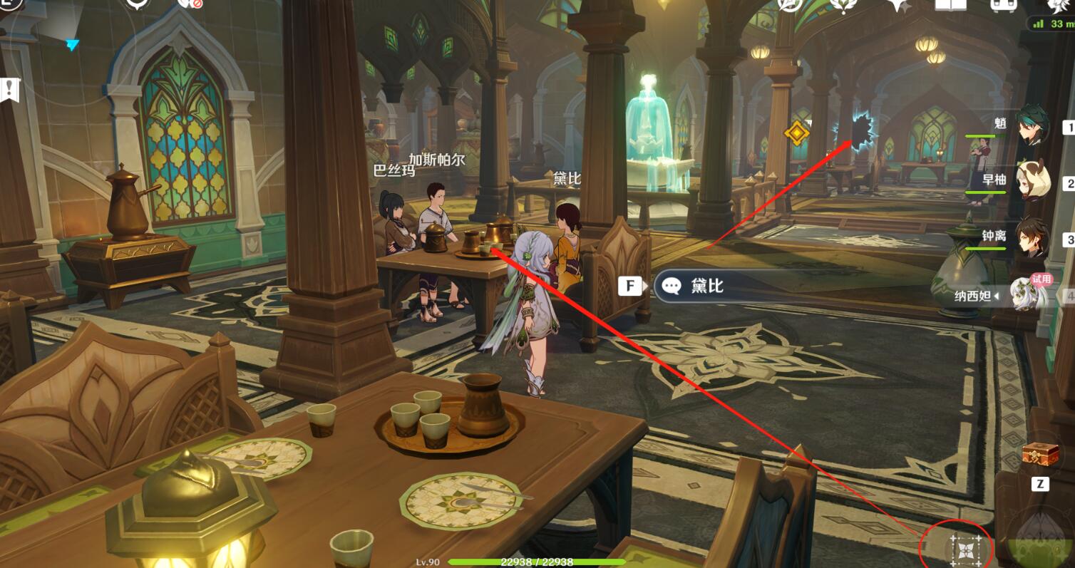 用草神的e技能,对这个桌子上的人使用,过完剧情进入出现的洞口