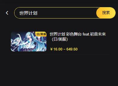 第二步:在代充网站首页搜索【世界计划】,在搜索结果中打开世界计划日服充值页面。