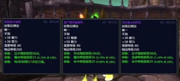 比如敏捷系DPS戒指和法系DPS直接都增加了不少命中属性,并且法系和治疗戒指的耐力加成都更低,在属性收益方面是高于5H和10人本常规掉落的。