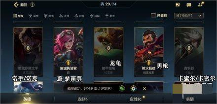 战争女神 希维尔 (轮子妈)、探险家 伊泽瑞尔 (EZ)、迅捷斥候 提莫 (提莫)、麦林炮手 崔丝塔娜 (小炮)、赏金猎人 厄运晓姐 (赏金)。