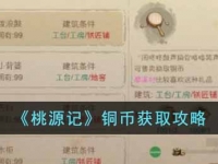 桃源记铜币怎么获得?桃源记获取铜币的方法有什么?桃源记铜币怎么获取?桃源记铜币获取攻略,桃源记是一款国风探索经营策略生存类手游,在游戏中铜币是十分重要的道具,很多小伙伴不知道铜币的获取方法,那么下面小编给大家带来桃源记铜币的获取攻略,有需要的小伙伴一起来看看吧。