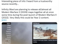 使命召唤19现代战争2是为使命召唤的19部正式作品,在游戏内将会延续上一部现代战争重启作的故事线,讲述一个更加黑暗的战争故事,使命召唤19现代战争2十分的有趣,系列由其最为注重枪械的射击体验,玩家们能够使用不同的枪械道具进行战斗,在最近游戏曝光将会重置老地图推出,一起来看看吧。