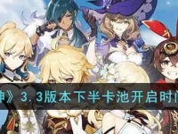 原神3.3版本下半卡池什么时候开启?原神这是一个非常好玩的角色扮演类的冒险手游。整个游戏中我们将看到一系列的精彩的角色设定!在这里大家将进入到一个叫做提瓦特的异世界中去,大家在这里将进入到由七种元素打造的不同国家中,进行精彩的冒险之旅!游戏中,玩家作为旅行者,将和其他的角色一起去进行探索